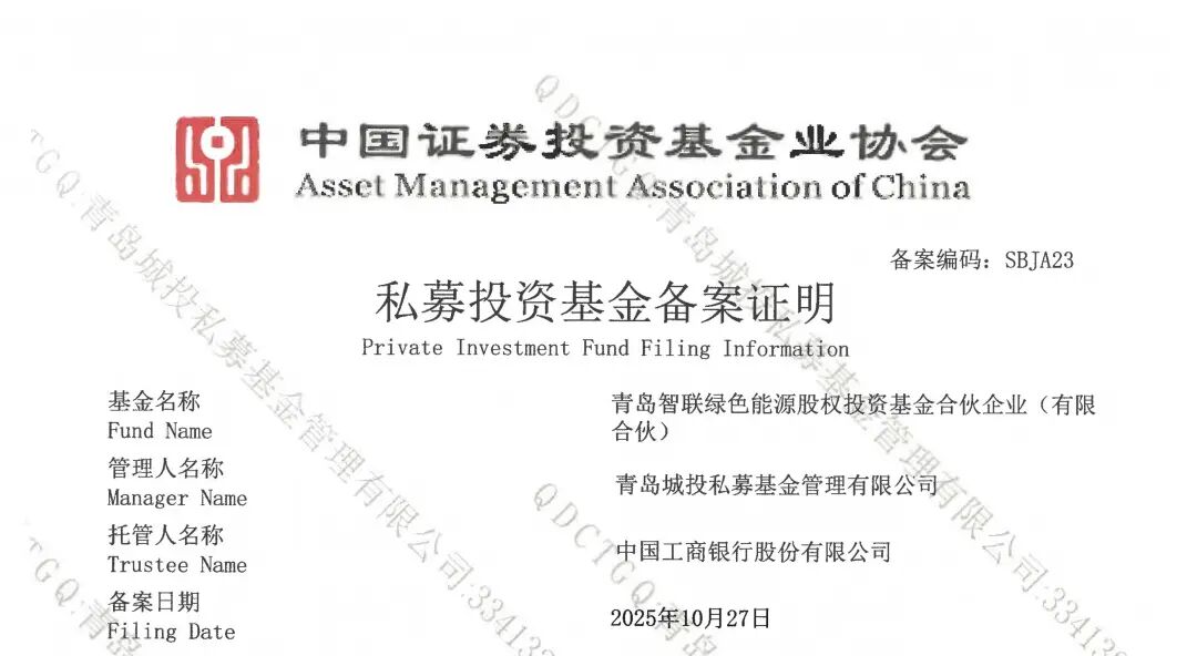 市級基金改革首單落地!青島城投發起組建的智聯綠色能源基金成功備案