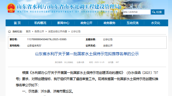 青島官路水庫工程被推薦為第一批國家水土保持示范創建項目